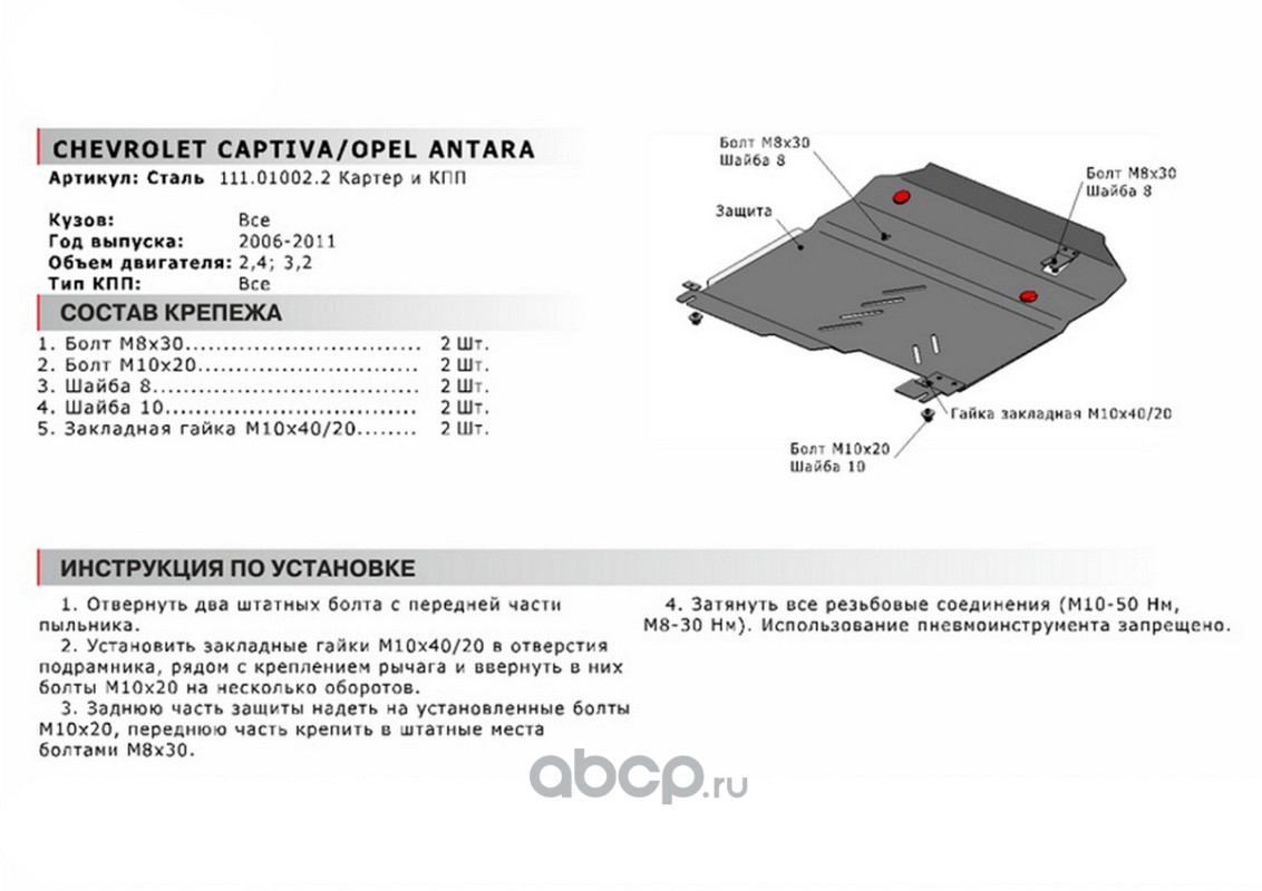 Защита картера и КПП Chevrolet, Opel Captiva, Antara крепеж в комплекте сталь 1.8 мм черный АвтоБроня