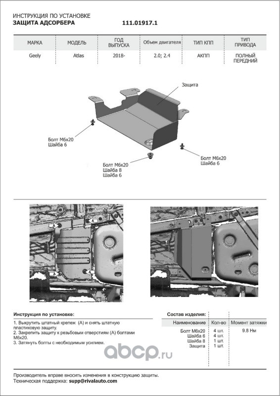 Защита адсорбера Geely Atlas крепеж в комплекте сталь 1.8 мм черный АвтоБроня