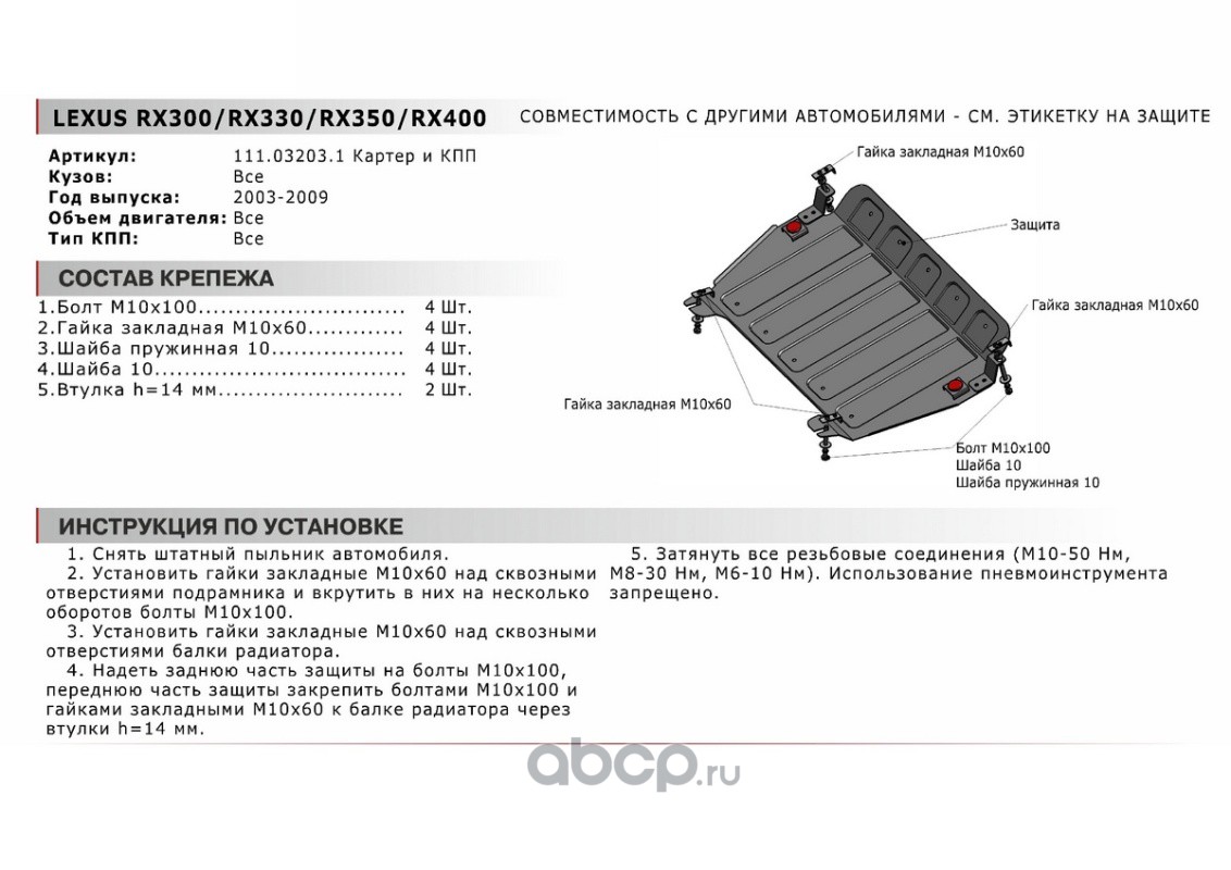 ЗК+КПП Lexus RX/Toyota Highlander, st 1.8mm