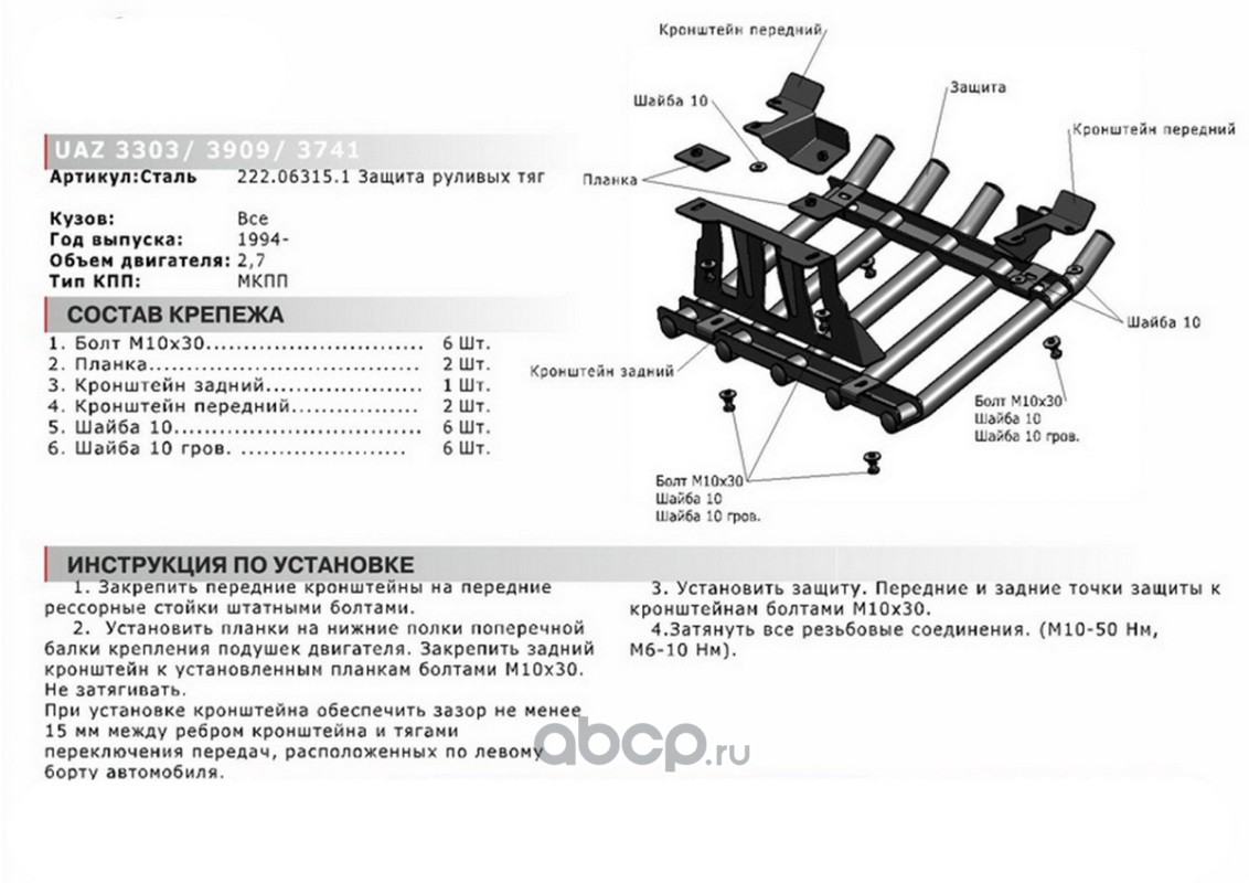 Защ.рулев.тяг из трубы УАЗ Буханка 3741,3303,3909