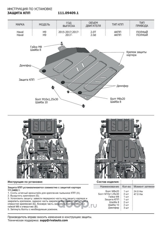 Защита КПП Haval H9 2014-н.в., 111.09409.1