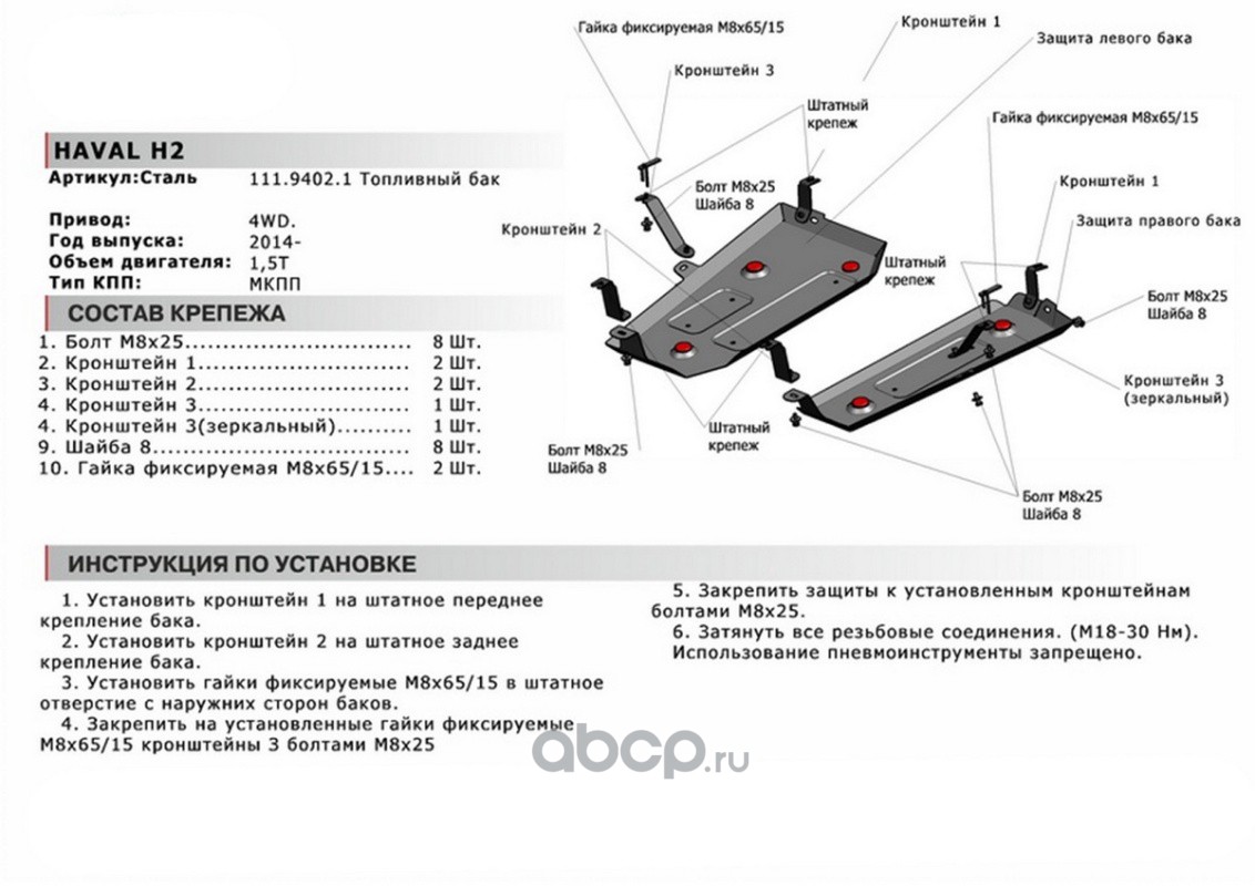 Защ.топл.бака Haval H2 МКПП 4WD 14-20 st 1.8mm 2 ч