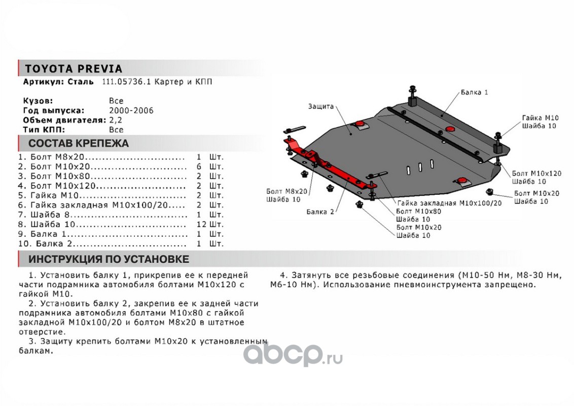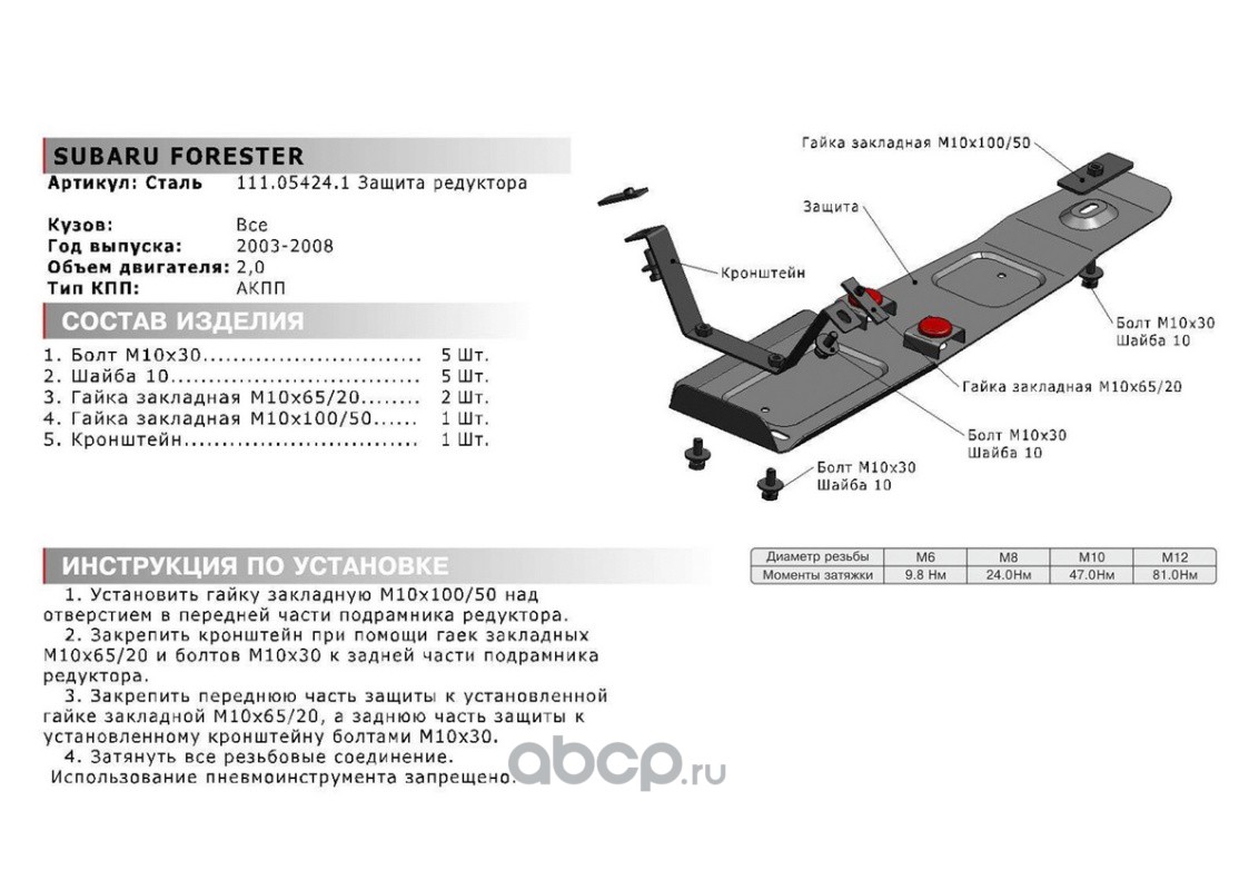 Защ.редуктора Subaru Forester АКПП 02-08, st 1.8mm