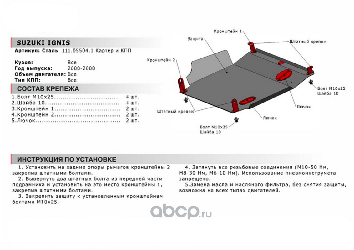 ЗК+КПП Suzuki Ignis I, II 2000-2008, st 1.8mm