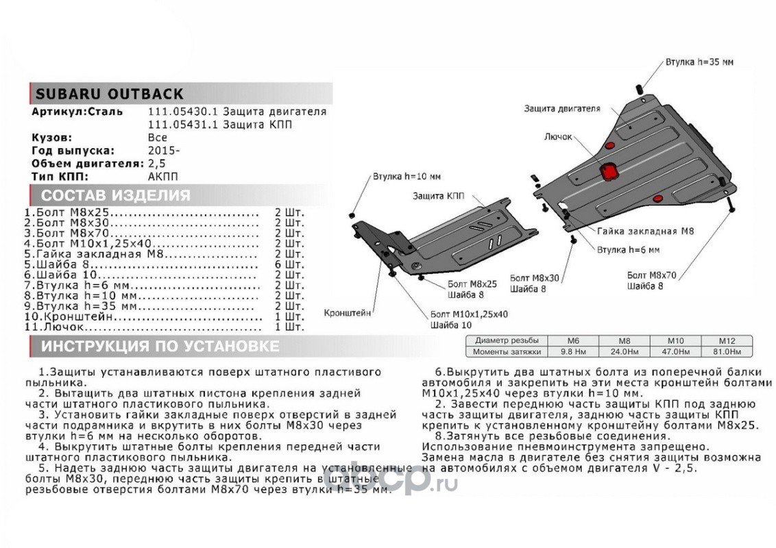 ЗК Subaru Legacy 19-/Outback 14-21, st 1.8mm