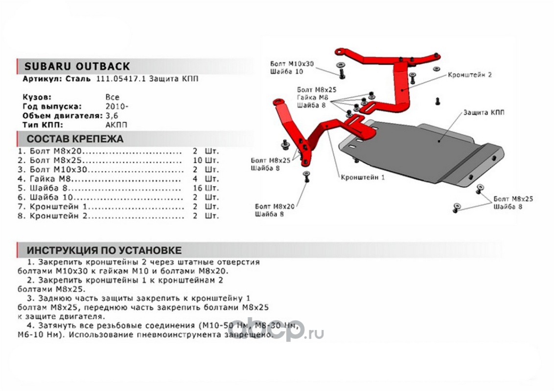 Защита КПП Subaru Outback АКПП 2009-2015, st 1.8mm
