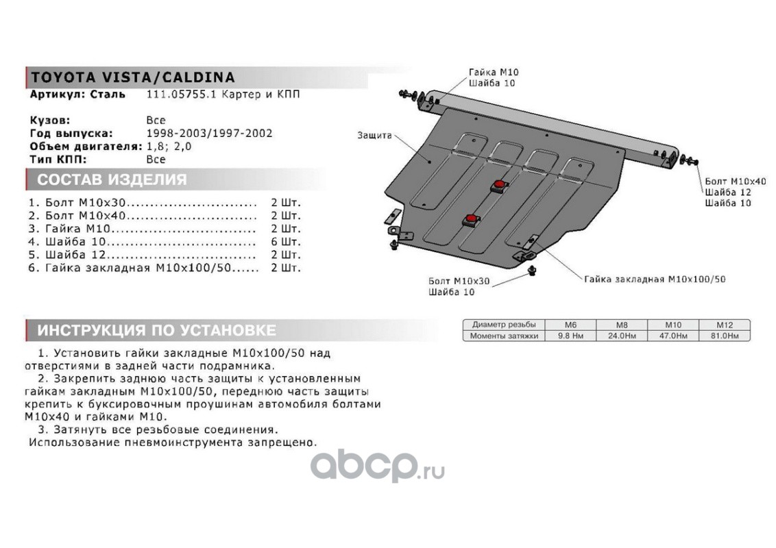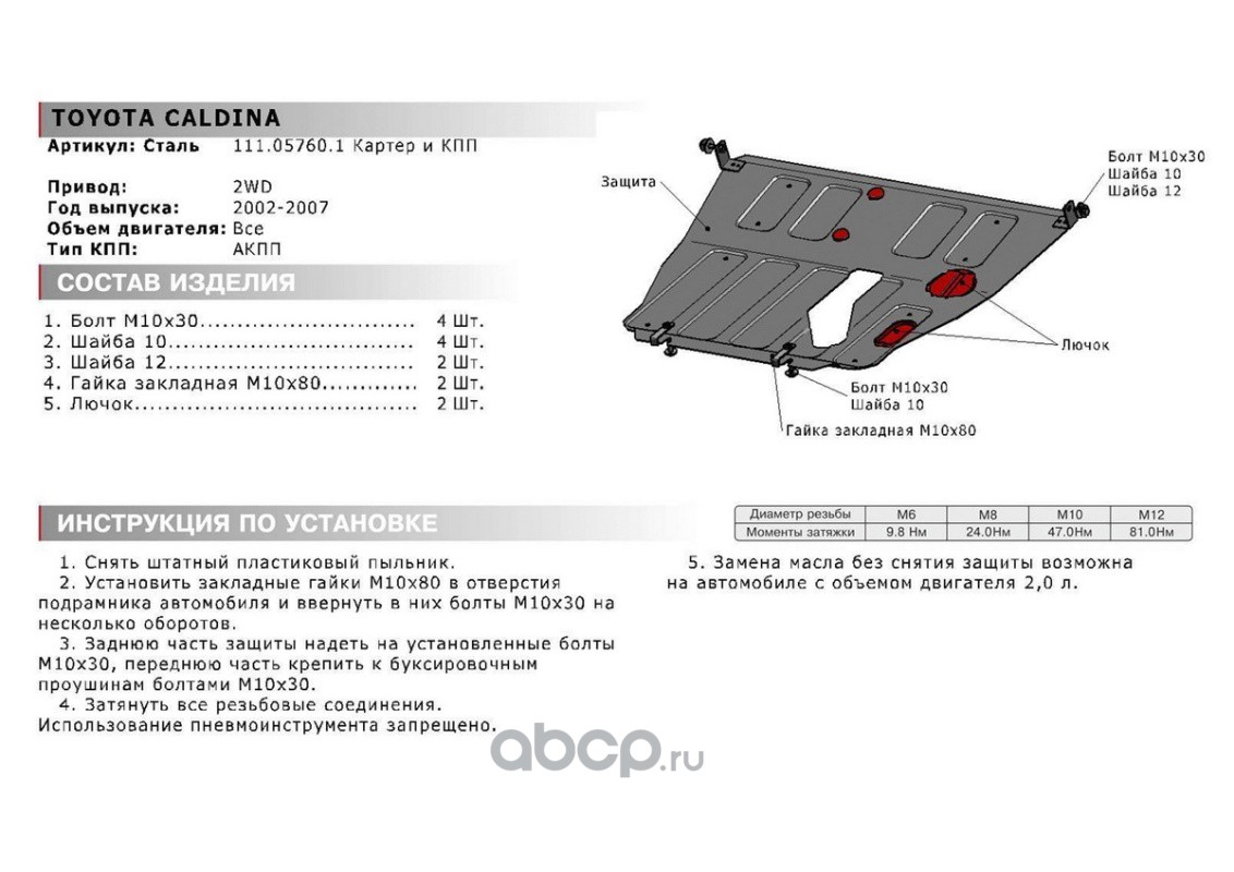 ЗК+КПП Toyota Caldina III FWD 2002-2007, st 1.8mm