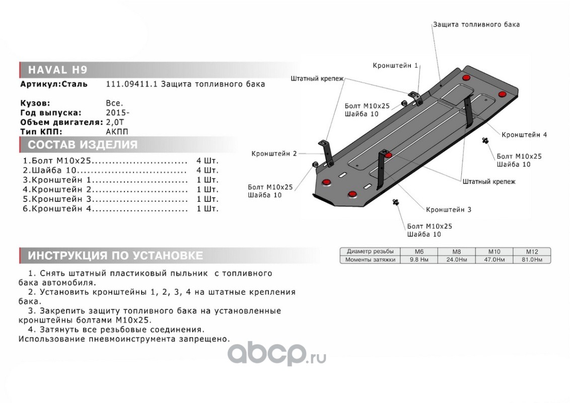 Защ.топл. бака Haval H9 2014-2017 2017-, st 1.8mm