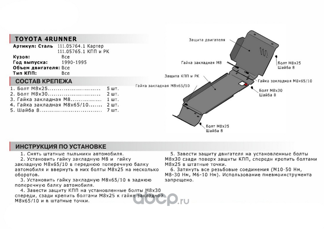 Защита КПП, РК Toyota 4Runner 89-95, 111.05765.1