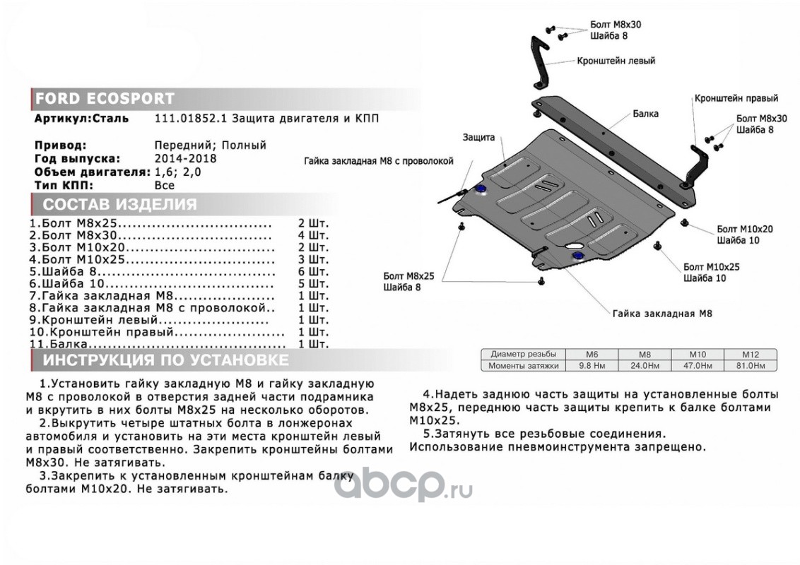 ЗК+КПП Ford EcoSport 2014-2018, st 1.8mm
