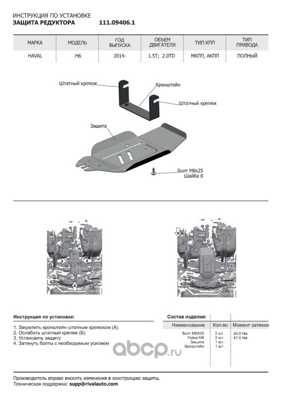 Защита редуктора Haval H6 4WD 2014-2020, st 1.8mm