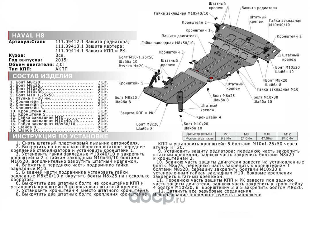 Защита картера Haval H8 2014-2017, 111.09413.1