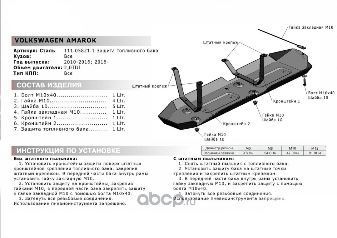 Защ.топл. бака VW Amarok 2010-2019, st 1.8mm