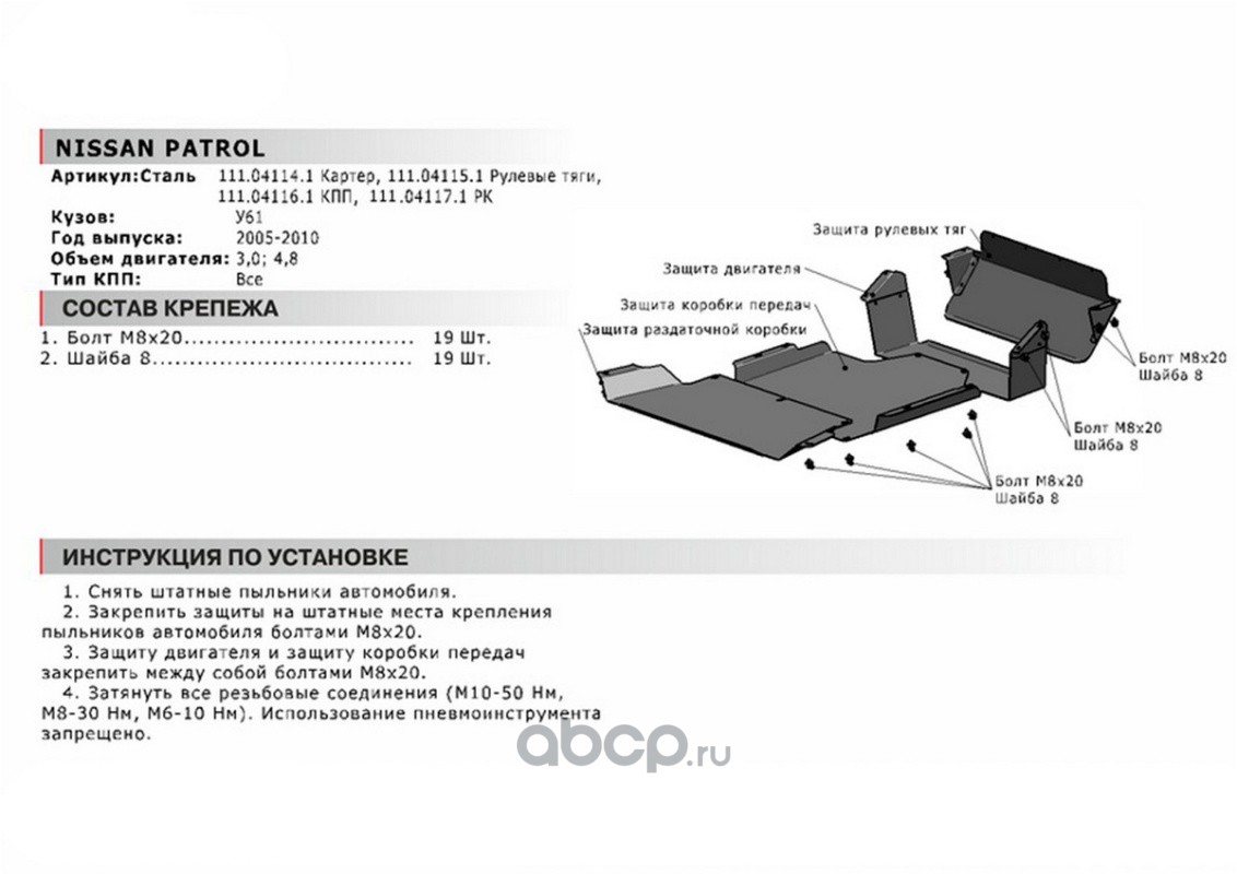 | Автоброня | 111041221 | Защита картера Nissan Patrol 10-19, 111.04122.1 | ||