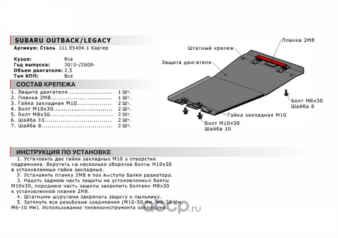 | Автоброня | 111054041 | ЗК Subaru Legacy 09-15/Outback 09-15, st 1.8mm | ||