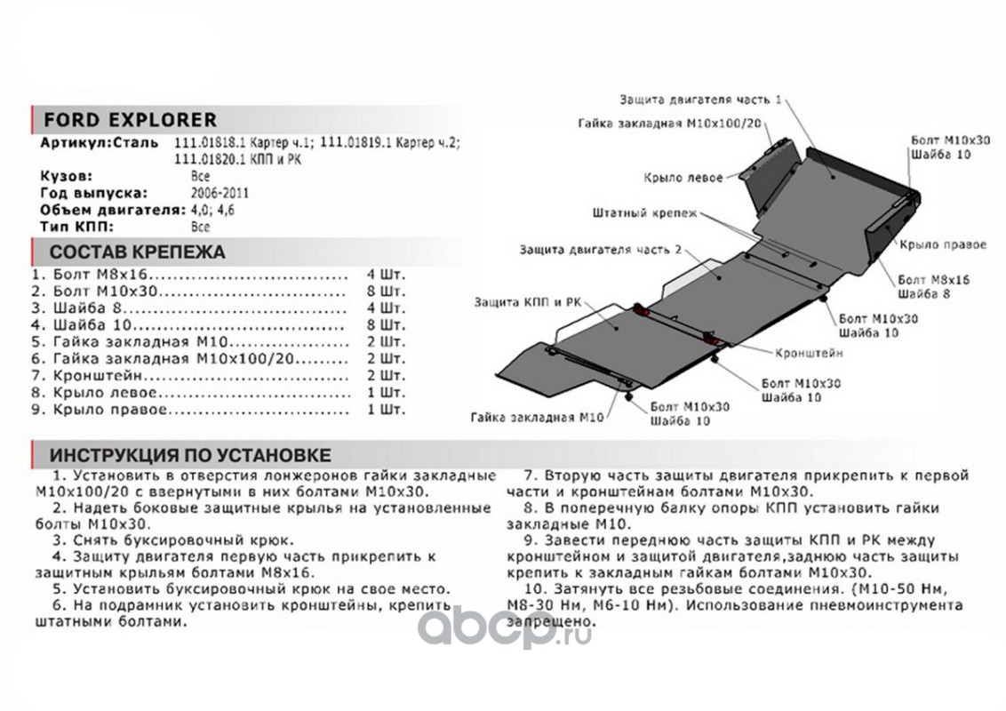 | Автоброня | 111018191 | Защита картера Ford Explorer 05-11, 111.01819.1 | ||