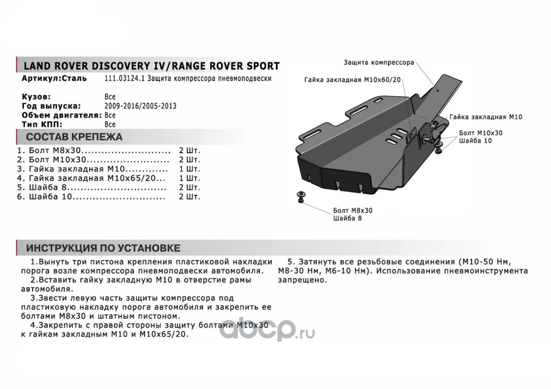 | Автоброня | 111031241 | Защ.компрес.пневмоподв. LR Discovery/RR Sport, st | ||