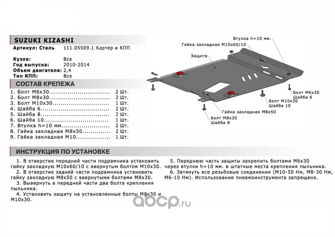| Автоброня | 111055091 | ЗК+КПП Suzuki Kizashi 2010-2014, st 1.8mm | ||