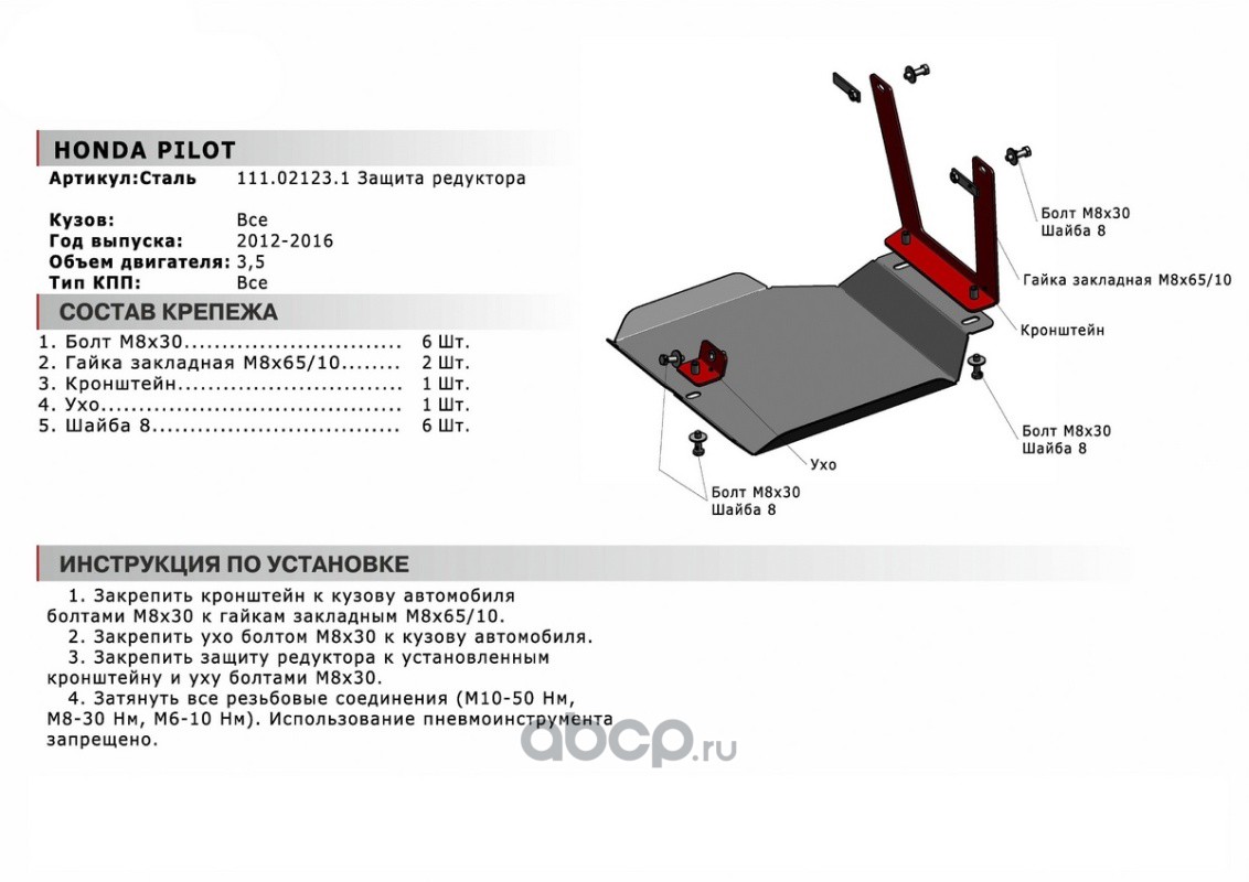 | Автоброня | 111021231 | Защ.редуктора Honda Pilot II 2011-2015, st 1.8mm | ||