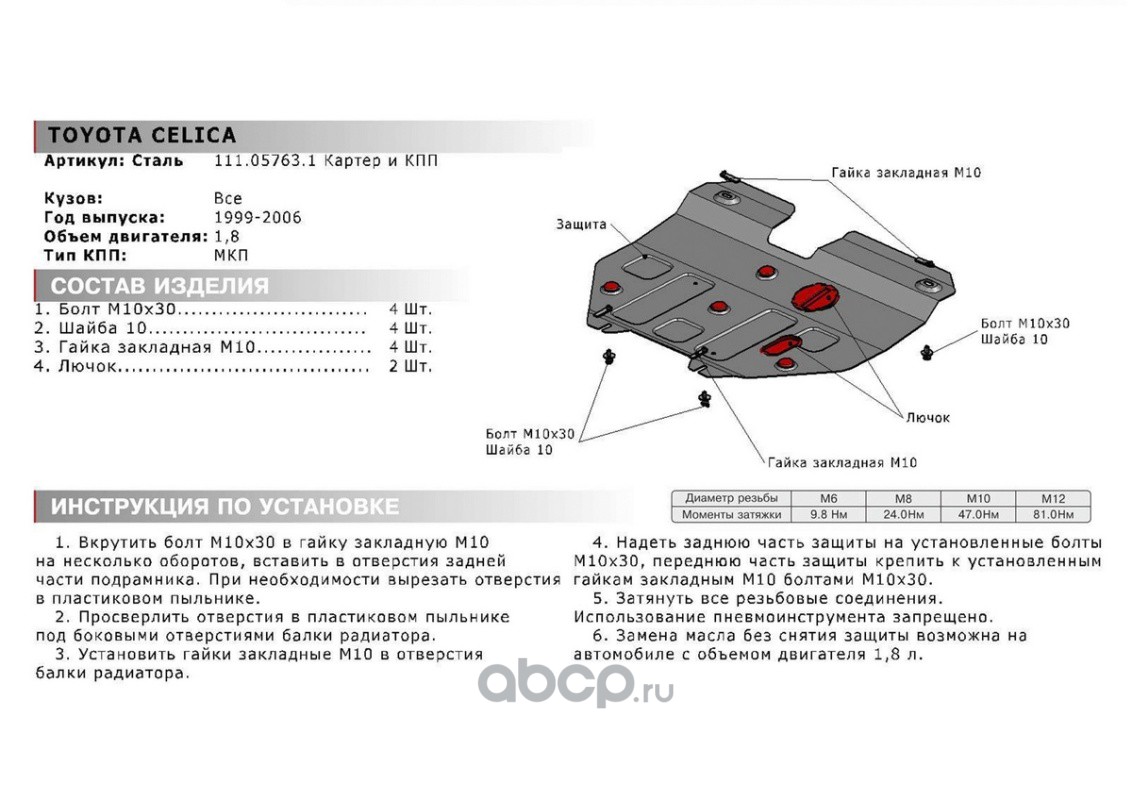 | Автоброня | 111057631 | ЗК+КПП Toyota Celica T230 МКПП 1999-2006, st 1.8mm | ||