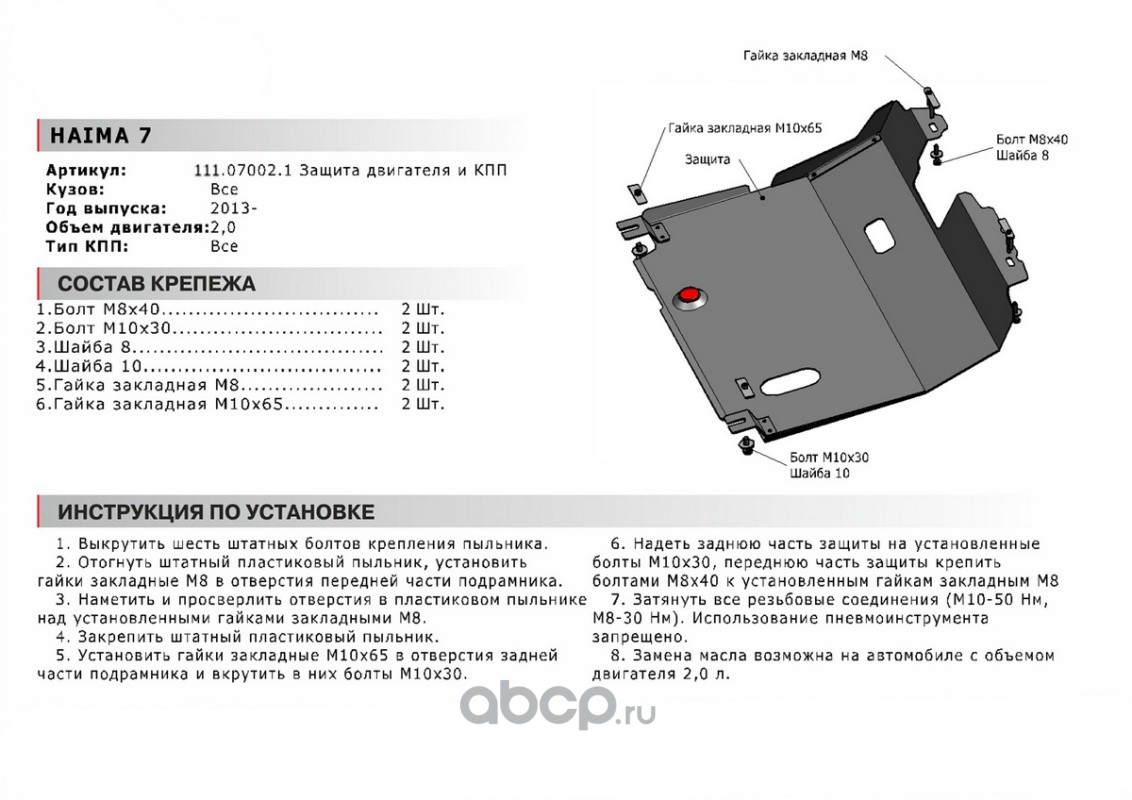| Автоброня | 111070021 | Защита картера и КПП | ||