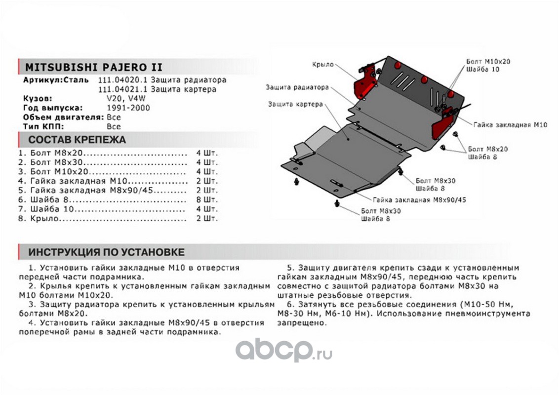 | Автоброня | 111040211 | Защита картера Mitsubishi Pajero 91-99 111.04021.1 | ||