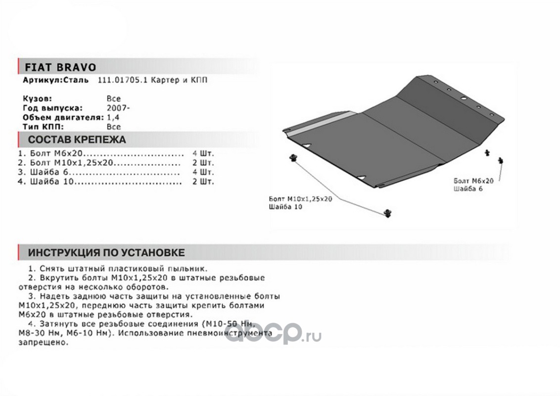 ЗК+КПП Fiat Bravo II 2007-2015, st 1.8mm