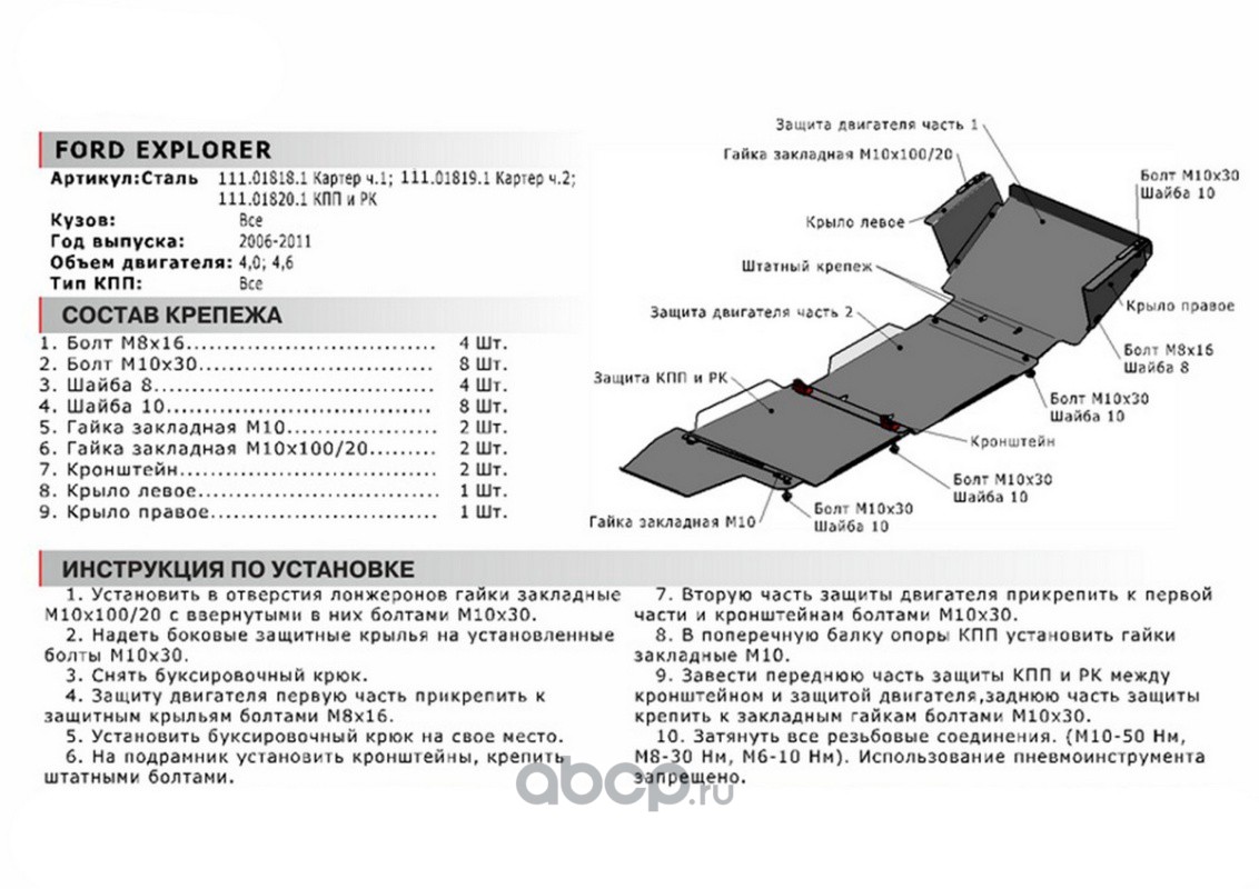 Защита КПП, РК Ford Explorer 05-11, 111.01820.1
