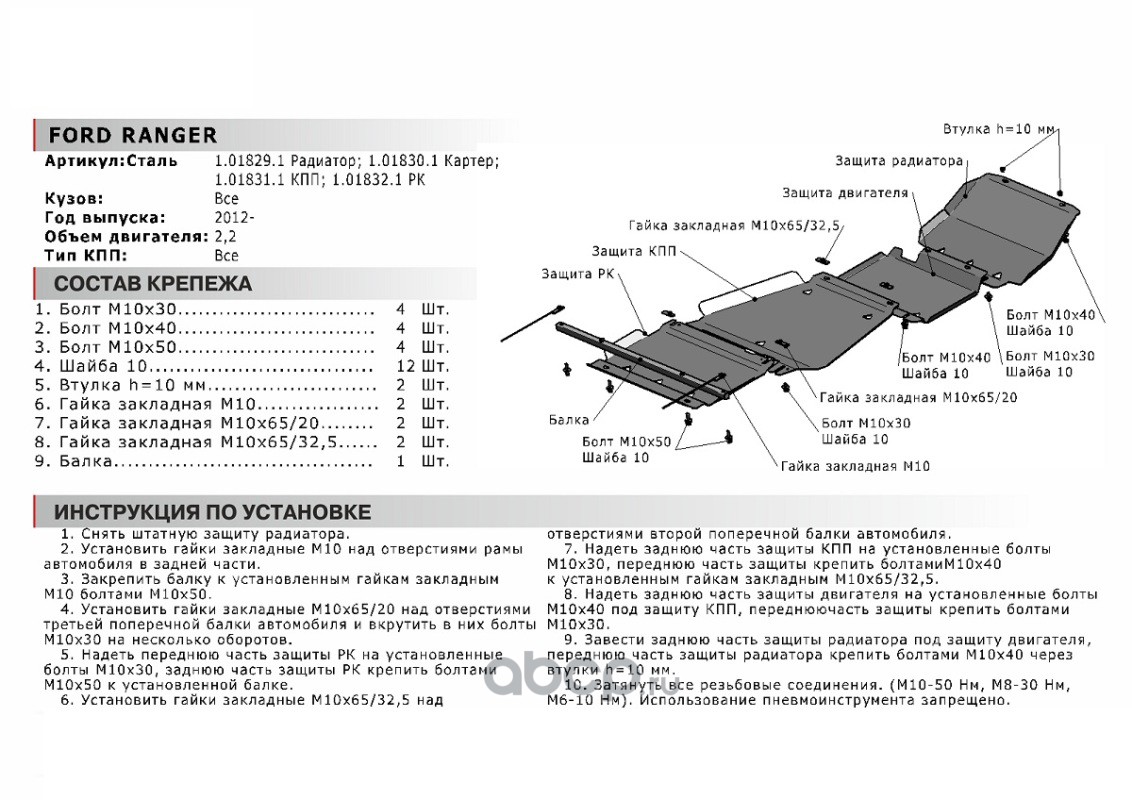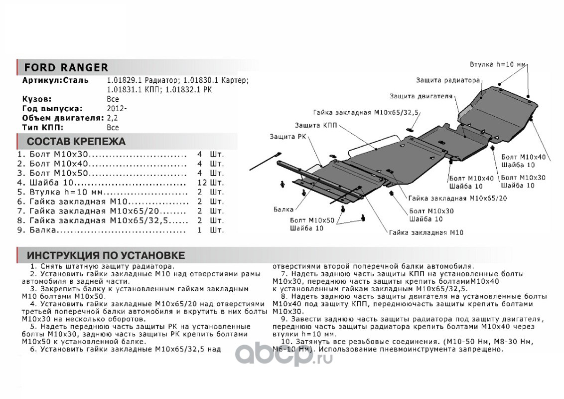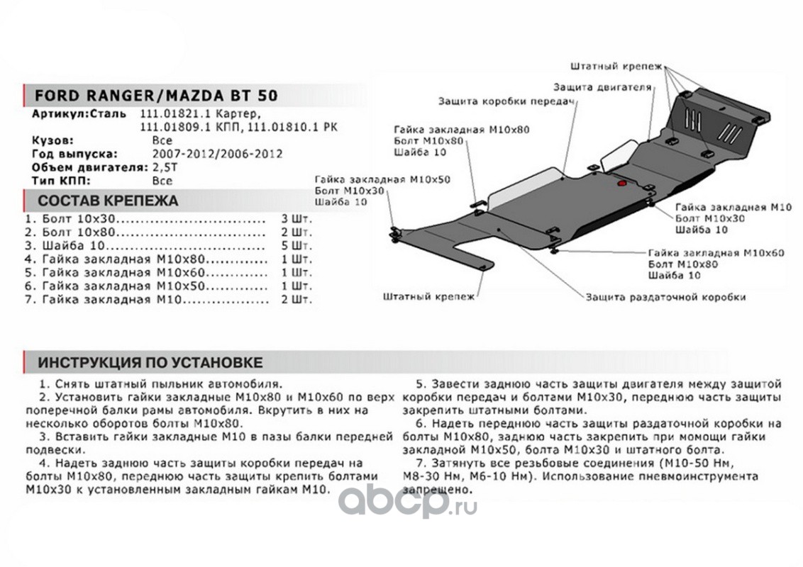 Защита КПП Ford Ranger 06-11/Mazda BT-50 06-11