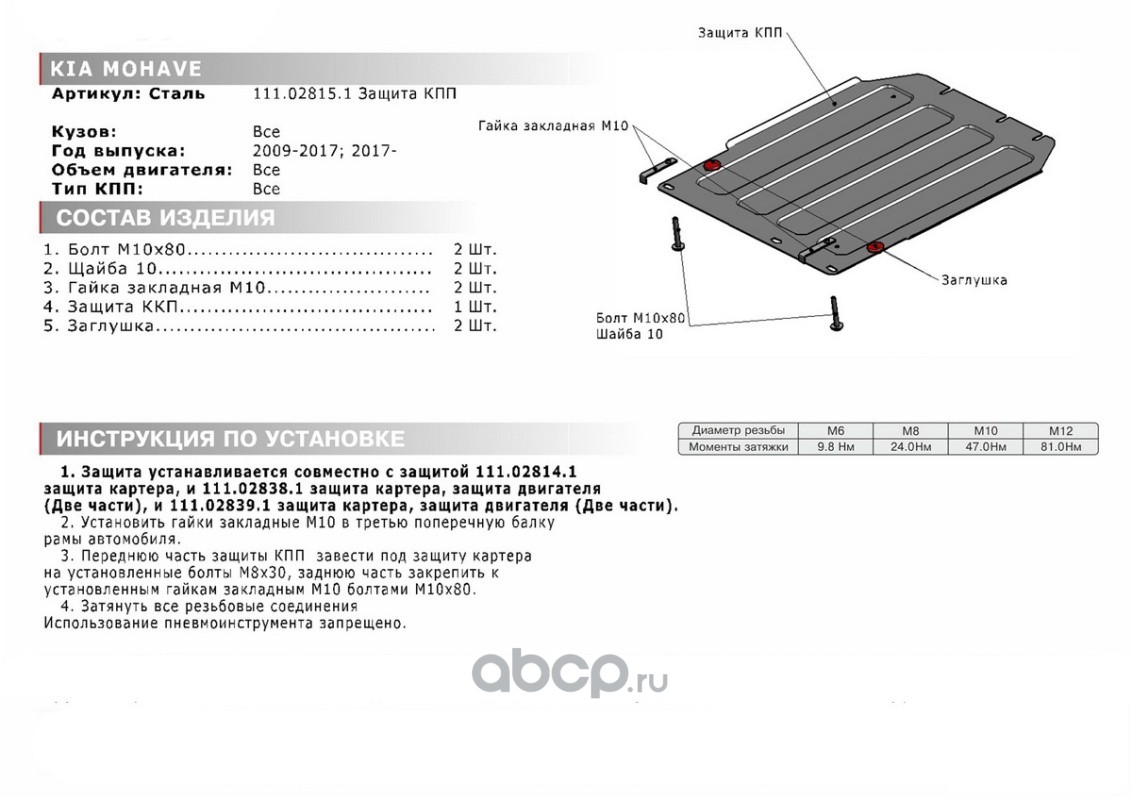 Защита РК Kia Mohave 2008-2020, 111.02816.1