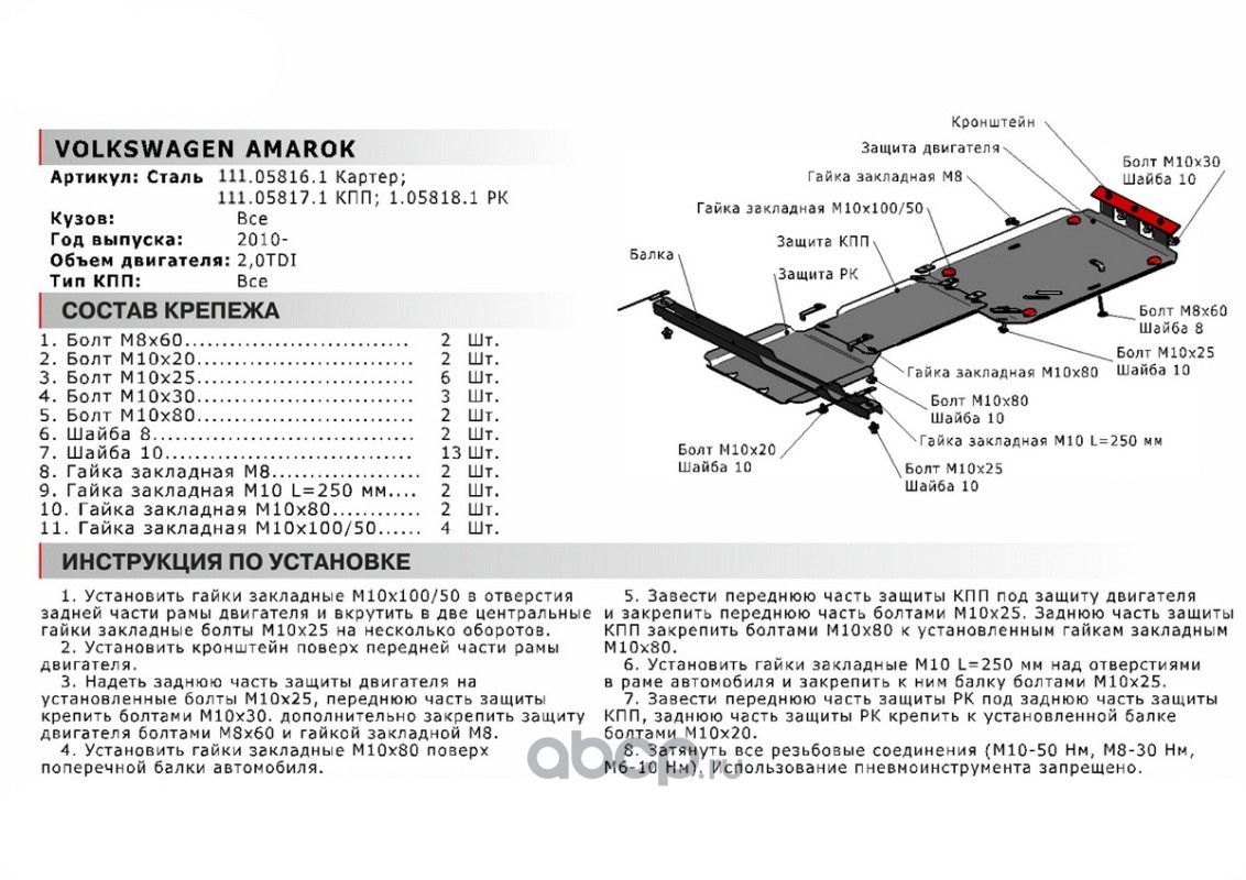 Защита КПП Volkswagen Amarok 10-16, 111.05817.1