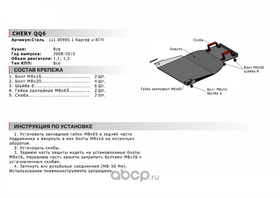 ЗК+КПП Chery QQ6 (S21) 2006-2010, st 1.8mm