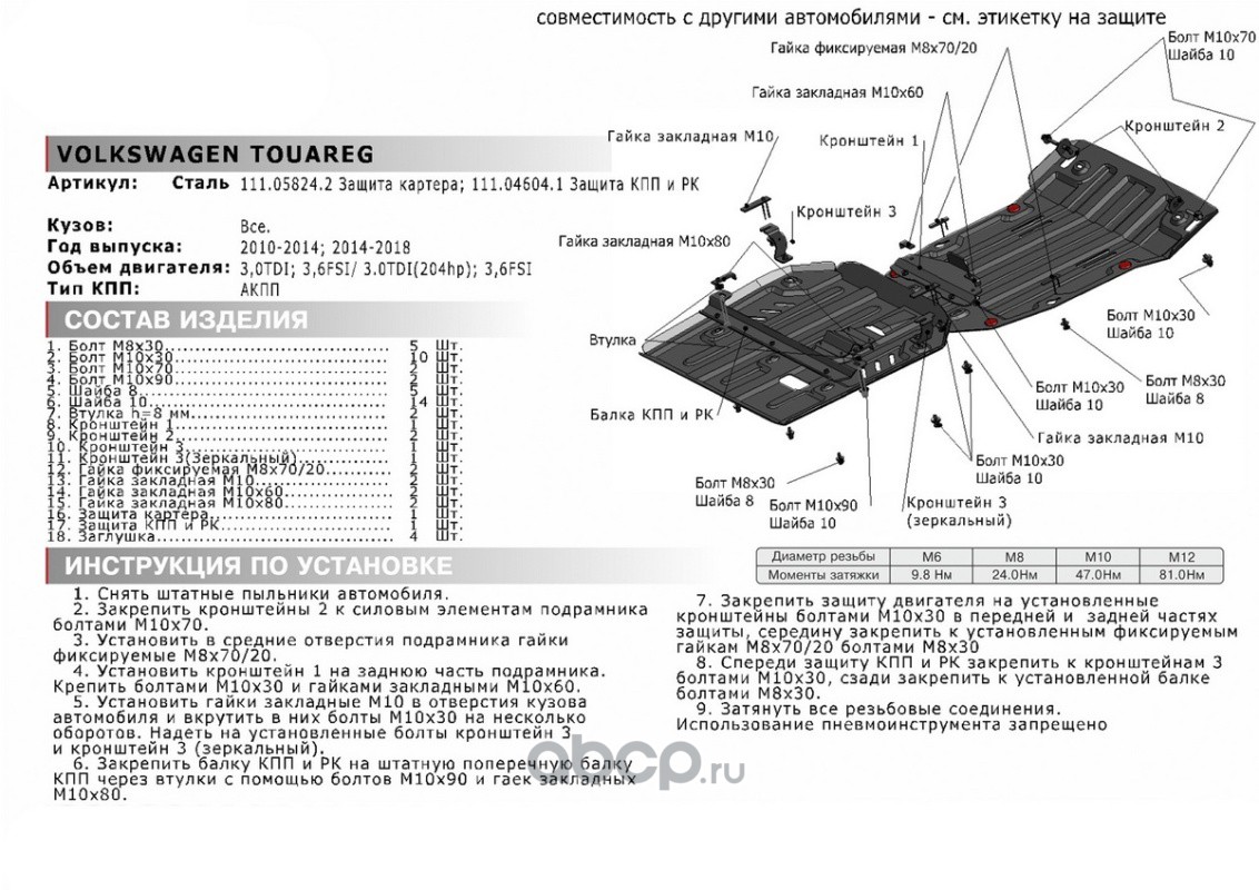 Защ.КПП, РК Porsche Cayenne 10-18/VW Touareg 10-18