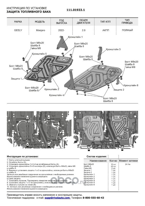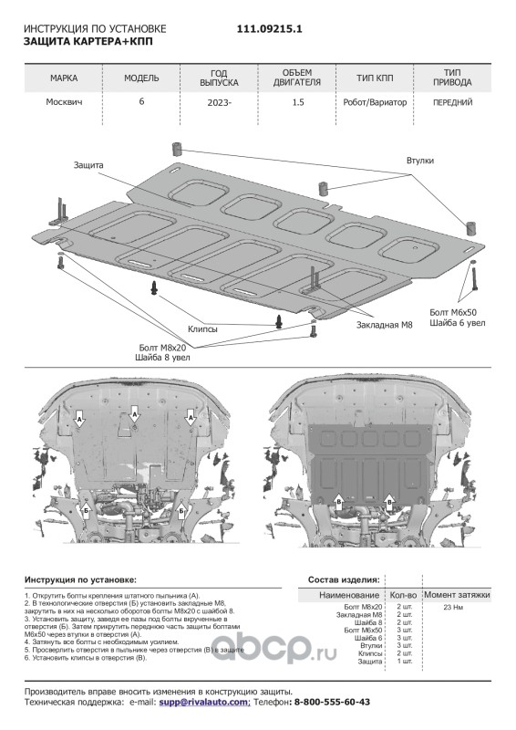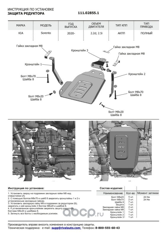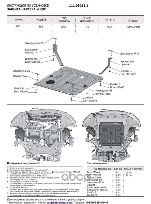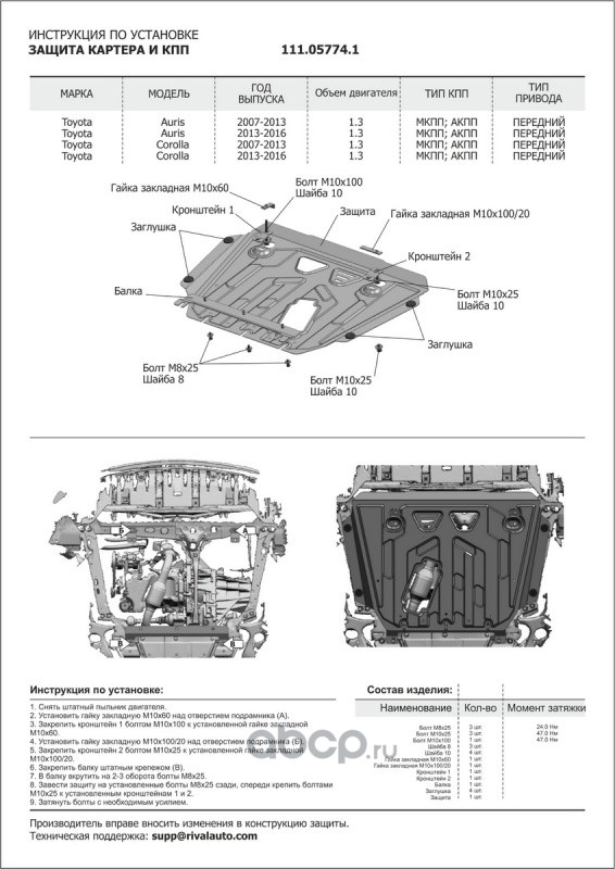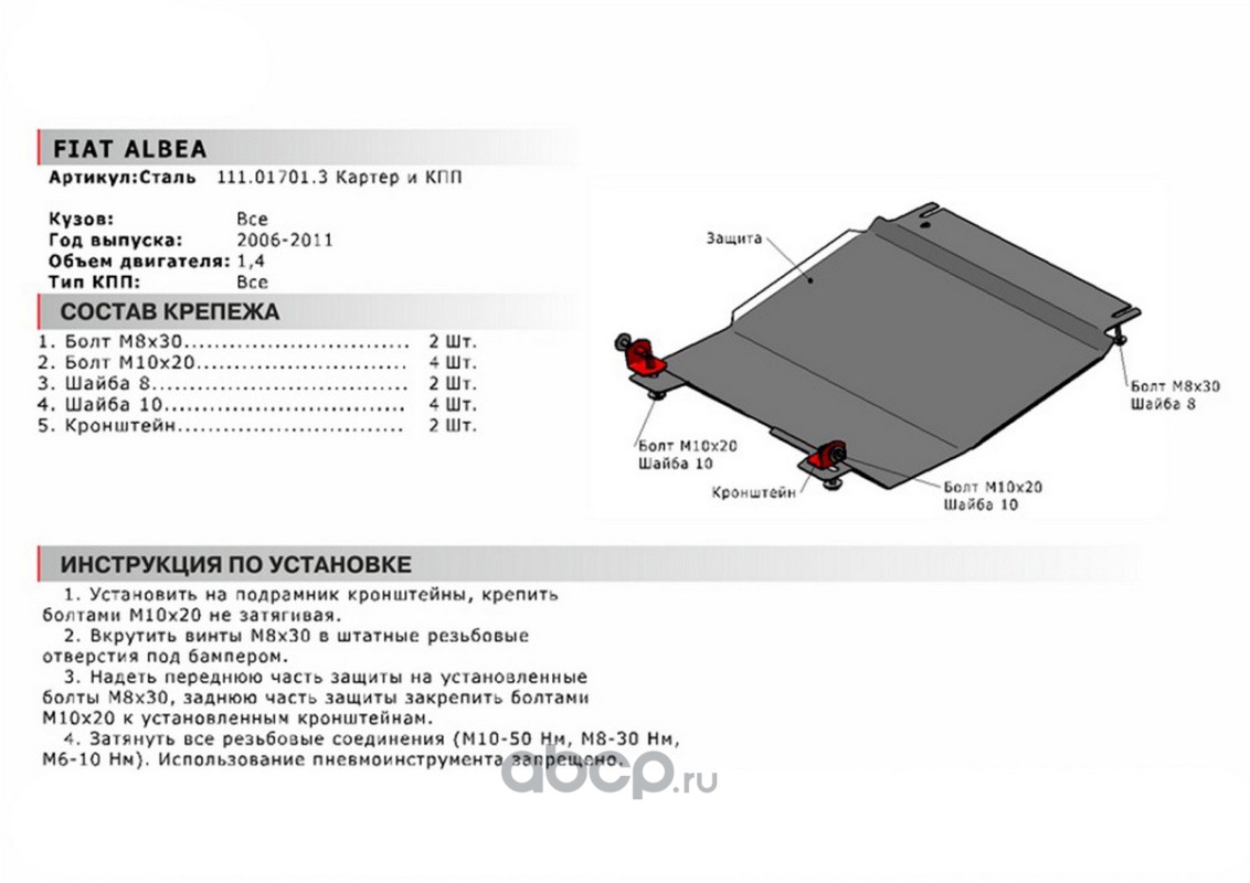 Защита картера и КПП, сталь 1.5 мм, с крепежом, штампованная