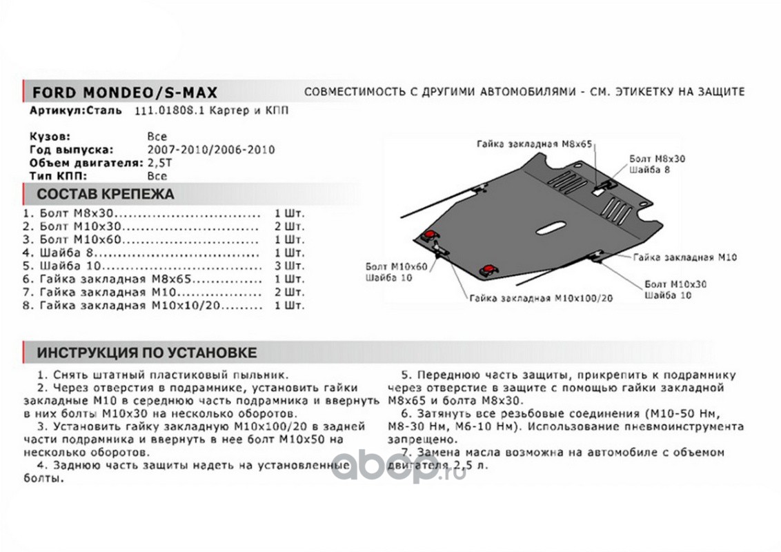ЗК+КПП Ford Mondeo 06-10/S-Max 06-10, st 1.8mm
