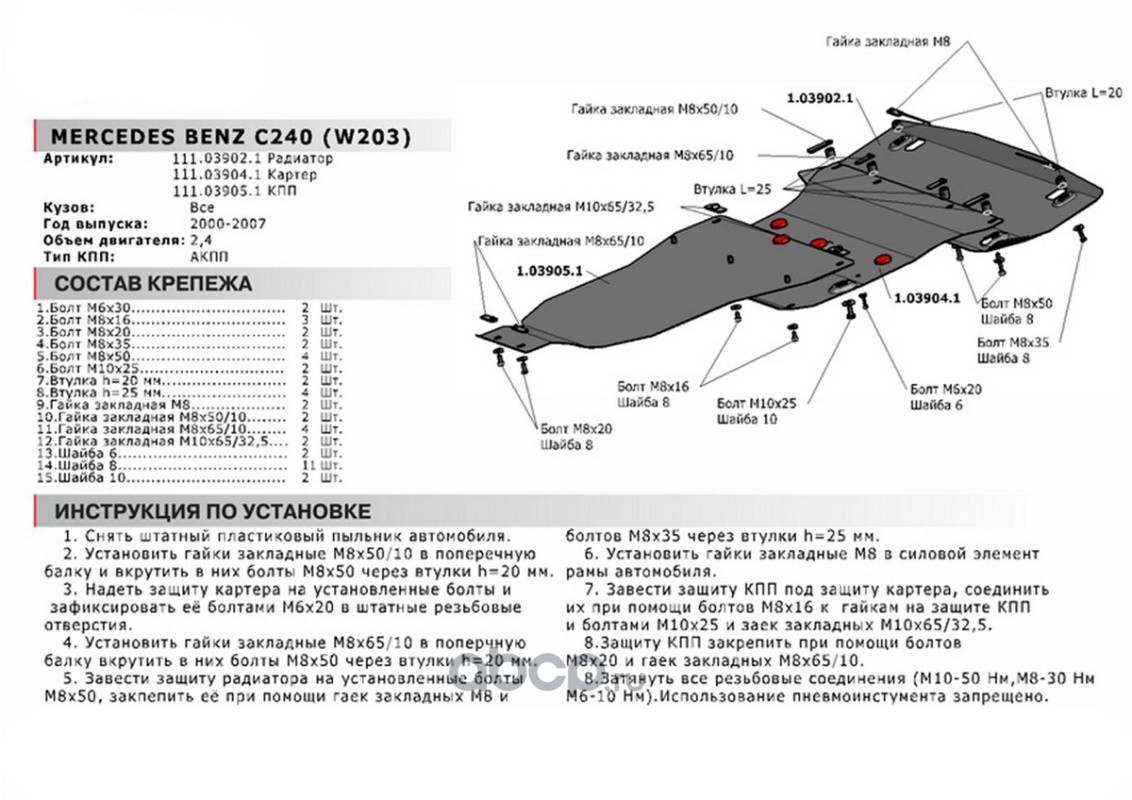 Защита картера Mercedes C-klasse W203 АКПП 00-08
