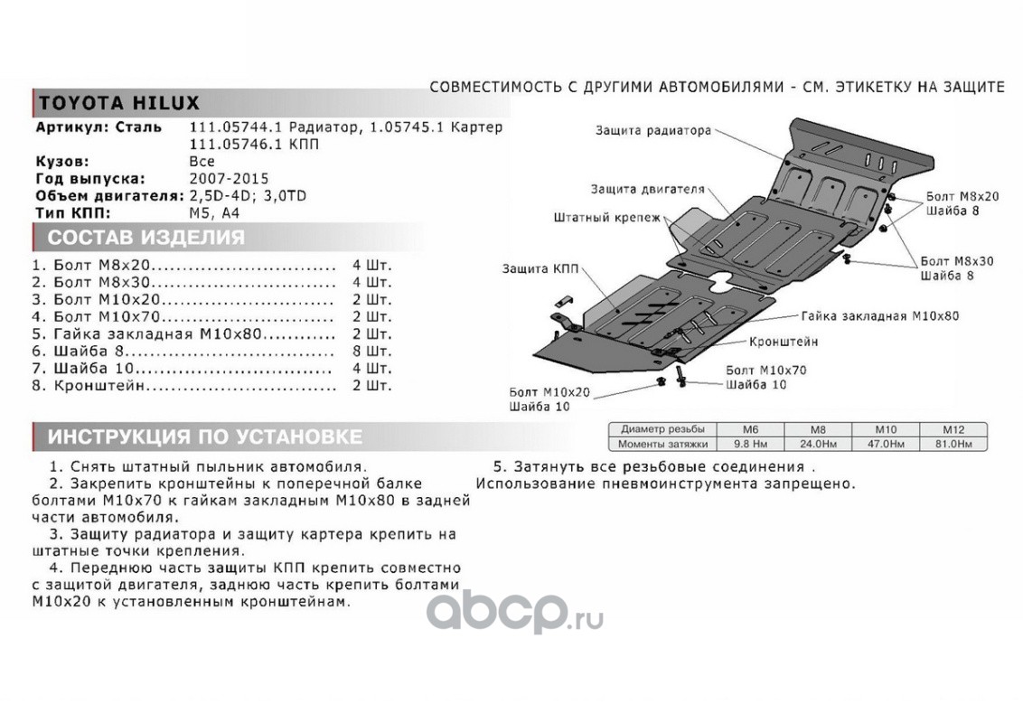 Защита КПП Toyota Hilux VII 2005-2015, 111.05746.1