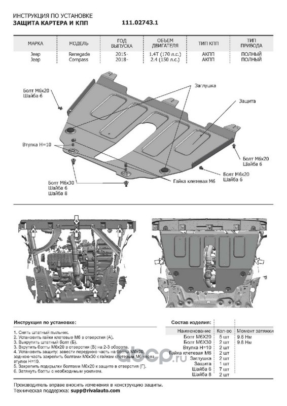 ЗК+КПП Jeep Compass 17-/Renegade 14-, 4WD st 1.8mm