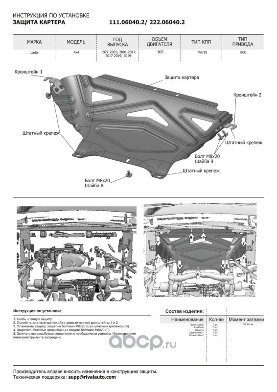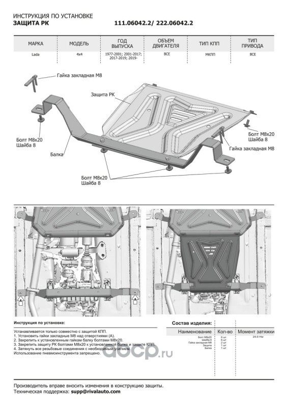 Защита РК АвтоБроня для Lada (ВАЗ) 2121 (4x4) (V - все) 1977-2021/2131 (4x4) 1993-2021/Niva Legend 2121 2021-н.в./Niva Legend 2131 2021-н.в., штампованная, сталь 1.5 мм, с крепежом, 111.06042.2
