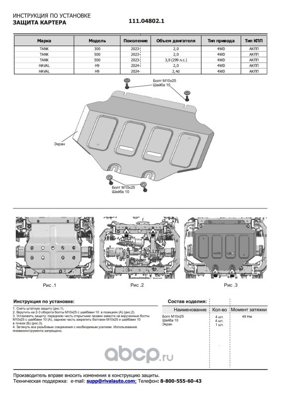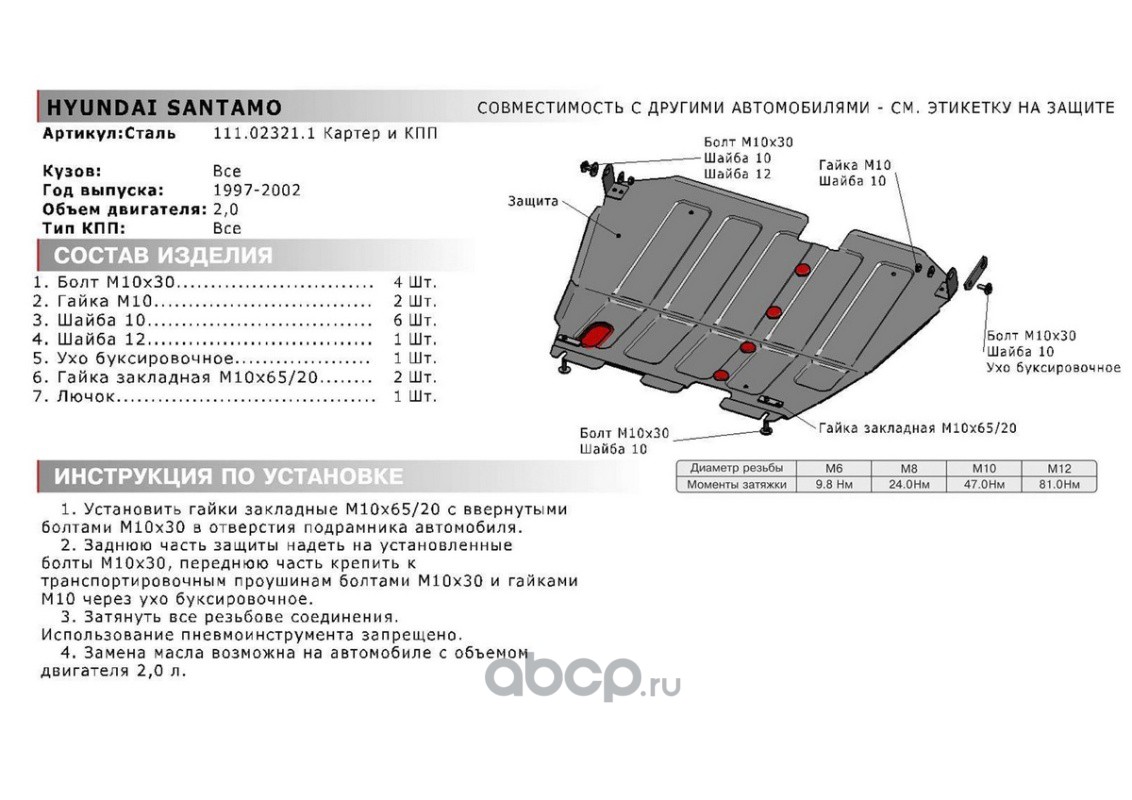 | Автоброня | 111089081 | Защита картера и КПП, сталь 1.4 мм, с крепежом, штампованная | ||