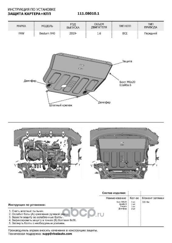 | Автоброня | 111080101 | Защита картера | ||