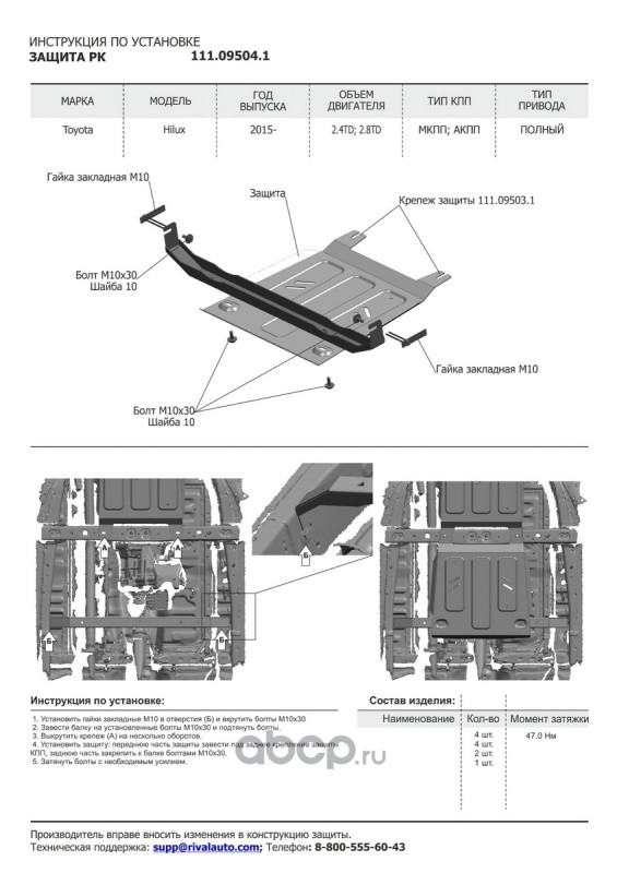 | Автоброня | 111095041 | Защита РК Toyota Hilux VIII 4WD 2015-, 111.09504.1 | ||
