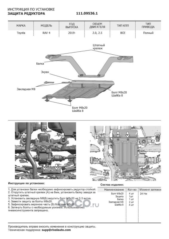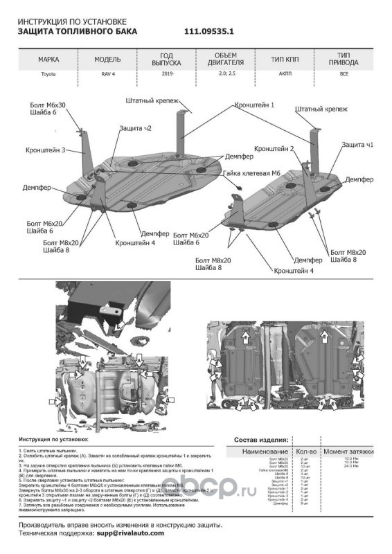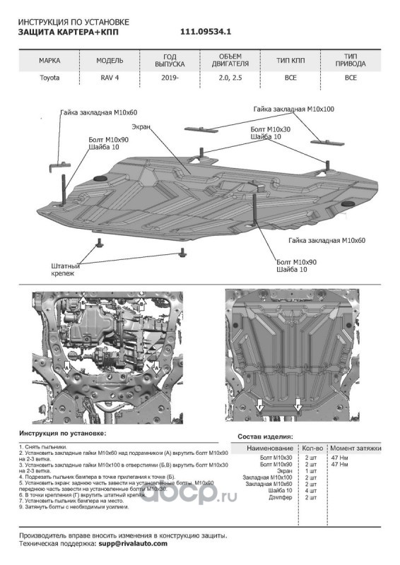 | Автоброня | K111095341 | К-т защит Toyota RAV4 XA50 19-, st 1.5mm, 4 части | ||