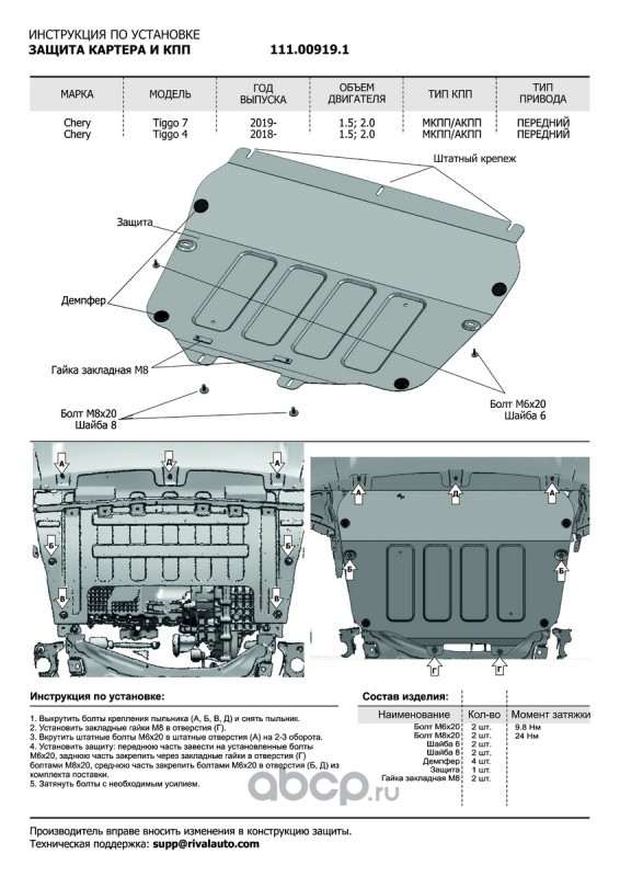 | Автоброня | 111009191 | ЗК+КПП Chery Tiggo 4 17-/Tiggo 7 19-20, st 1.8mm | ||