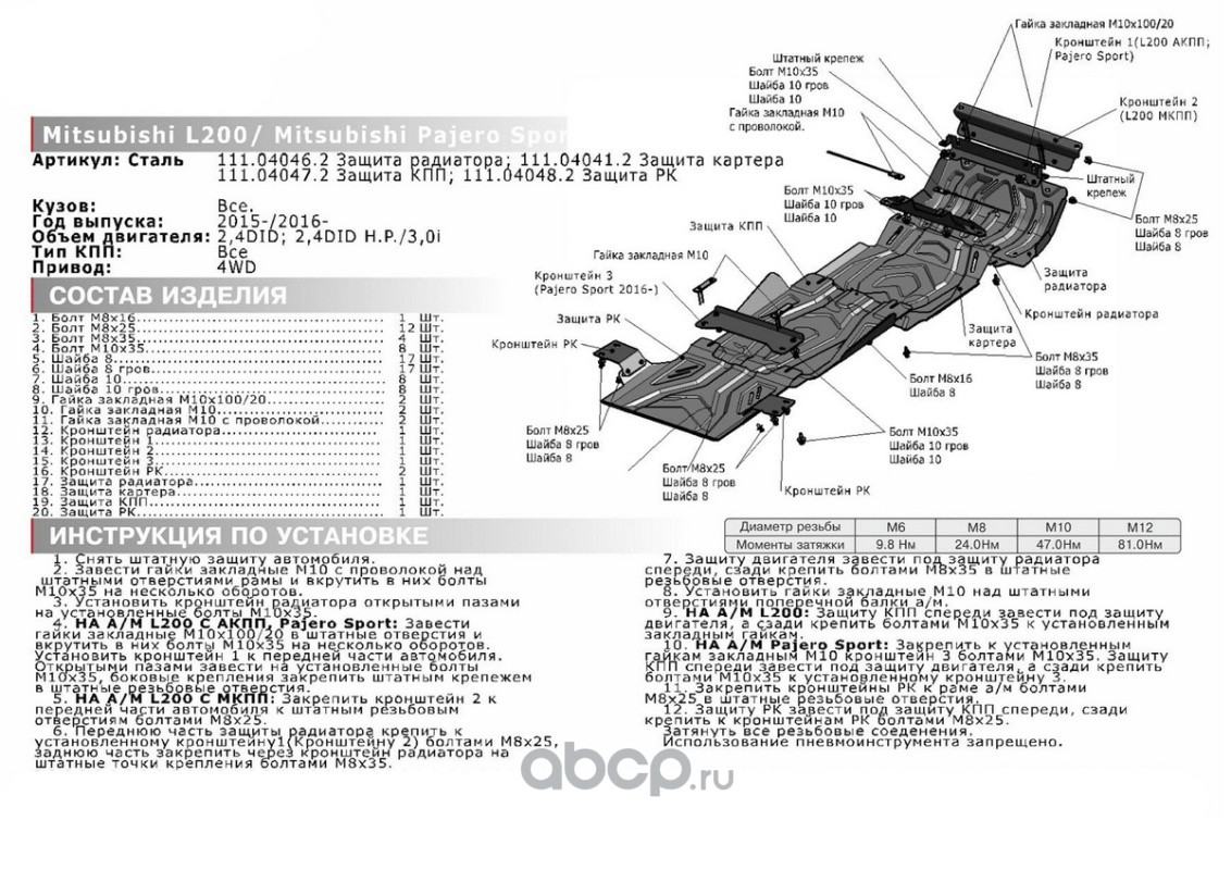 | Автоброня | 111040412 | ЗК Fiat Fullback/Mitsubishi L200/Pajero Sport 16- | ||
