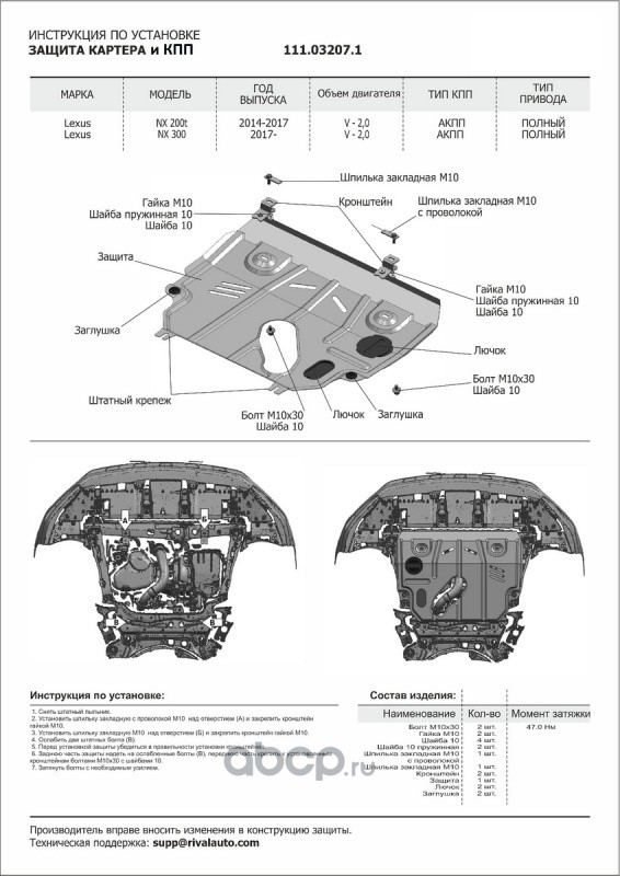 | Автоброня | 111032071 | ЗК+КПП Lexus NX 200t 14-17/NX 300 17-, st 1.8mm | ||