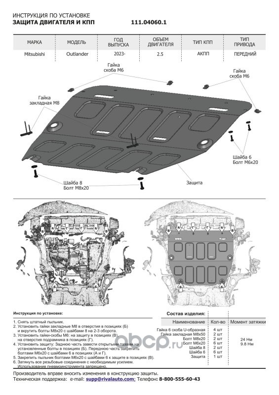 | Автоброня | K111028411 | Защита картера, КПП и РК | ||