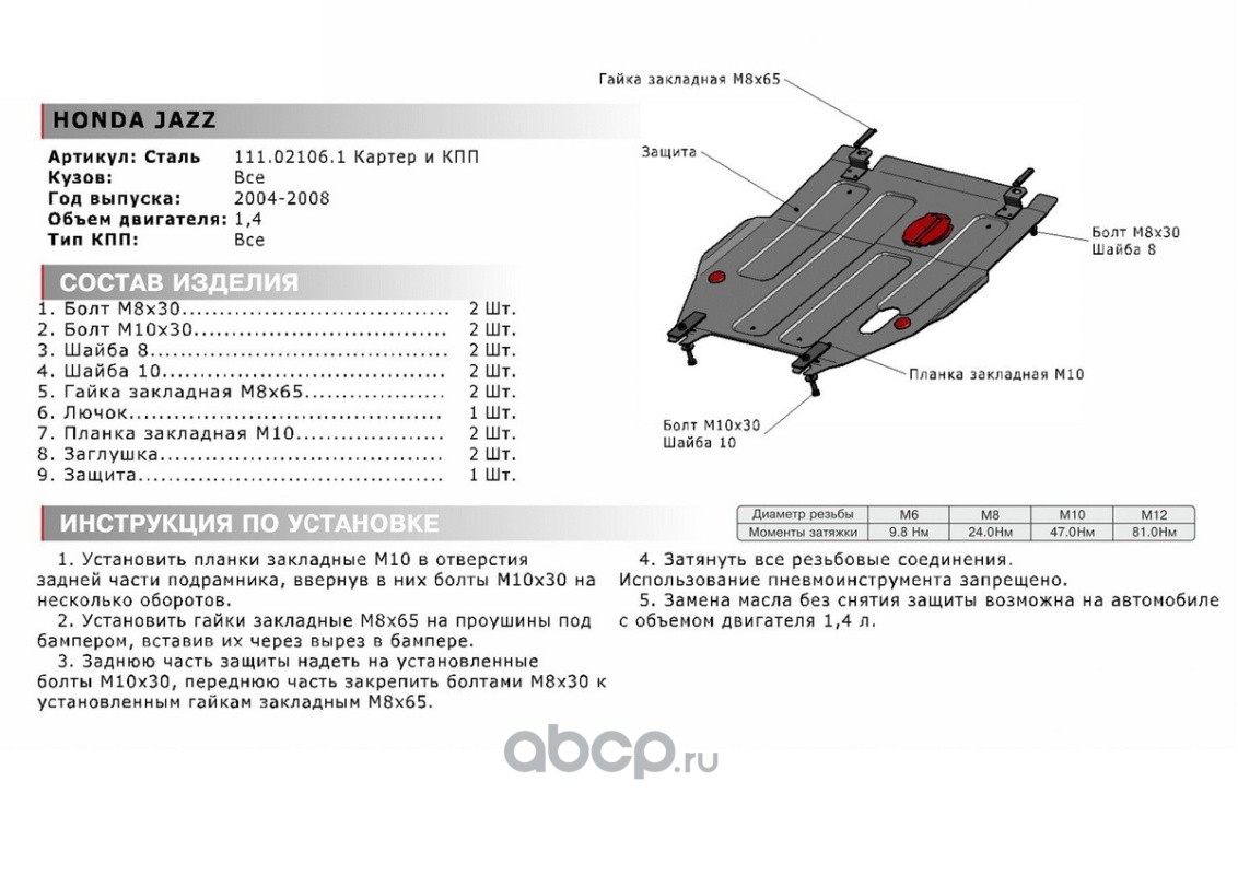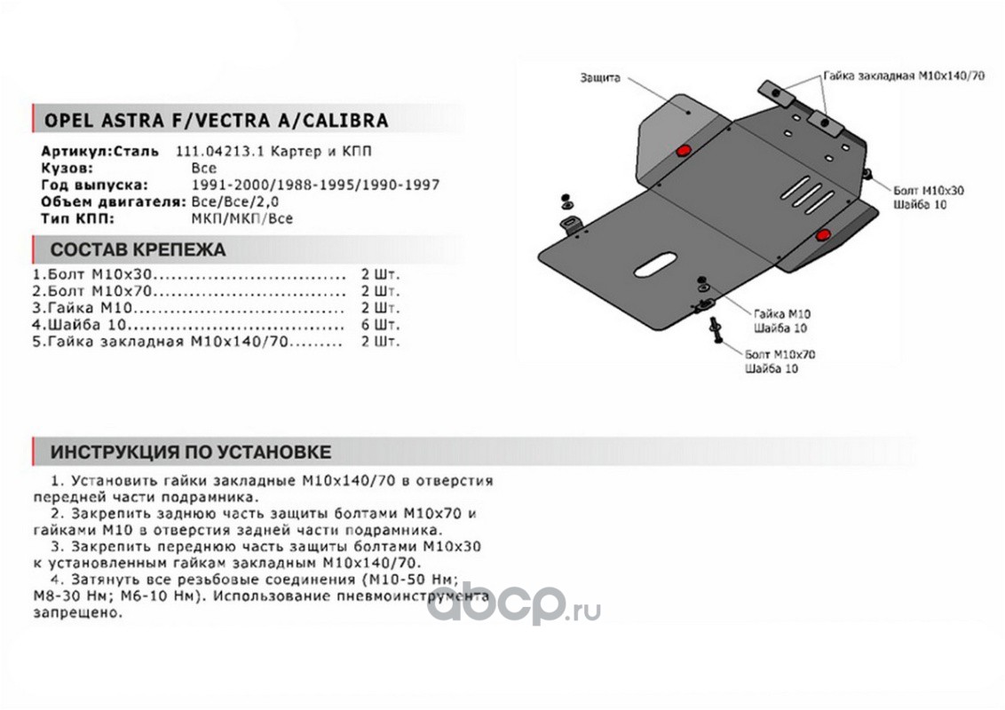 Защита картера, сталь 1.5 мм, крепеж в комплекте