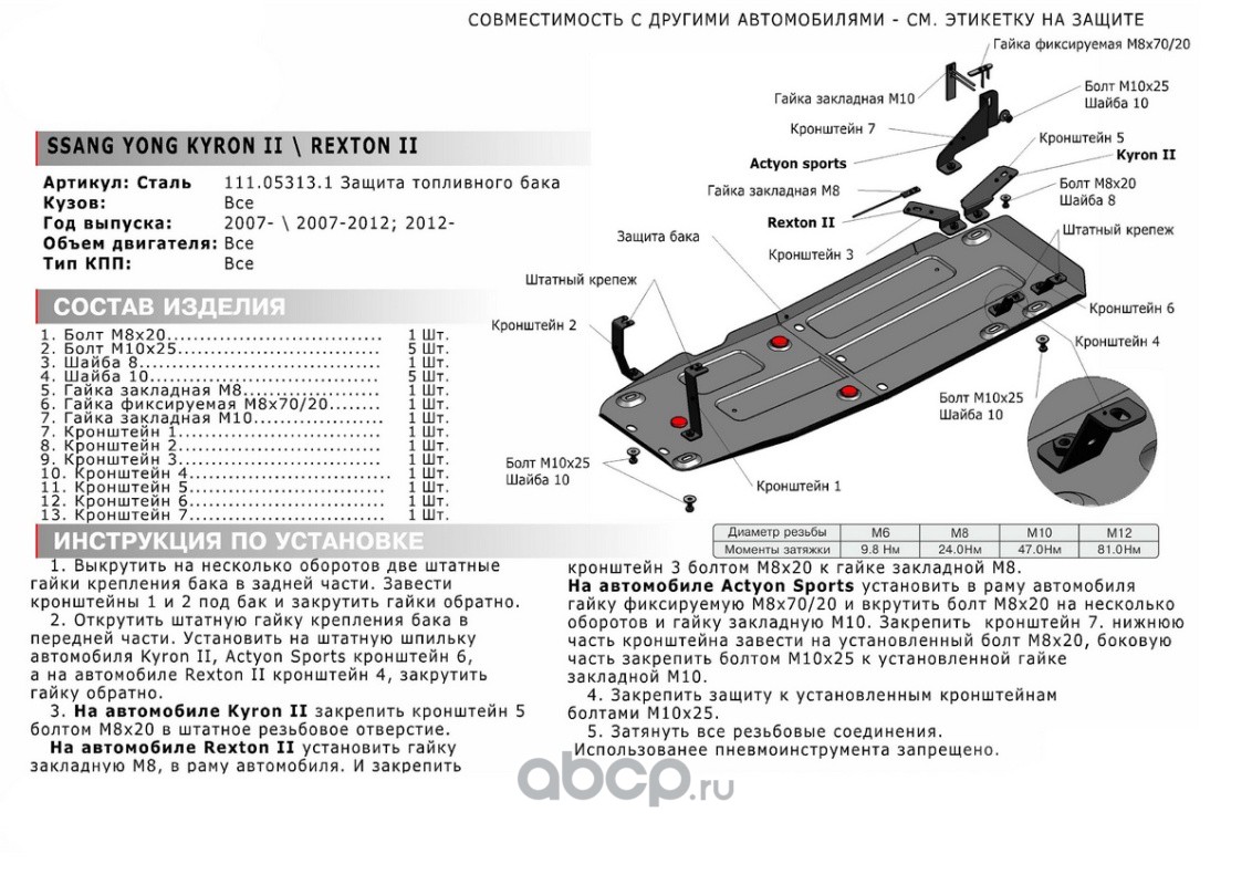 Защ.топл.бака SsangYong Actyon Sports/Kyron/Rexton