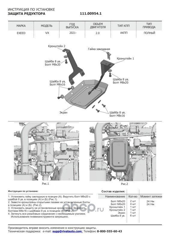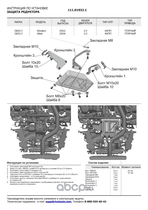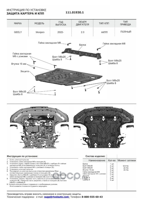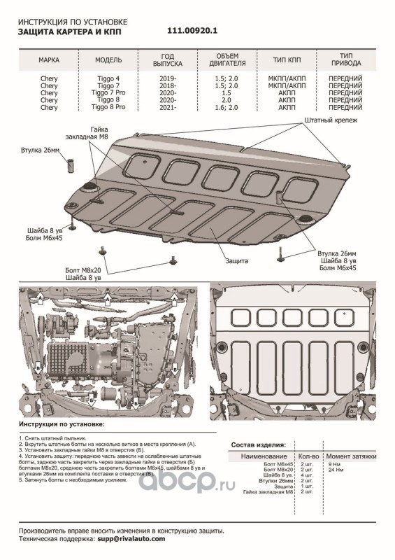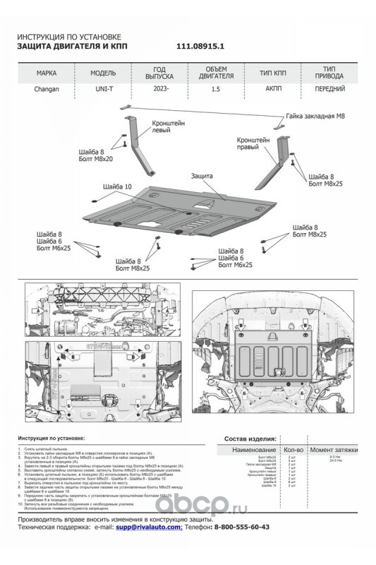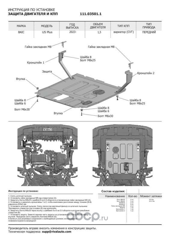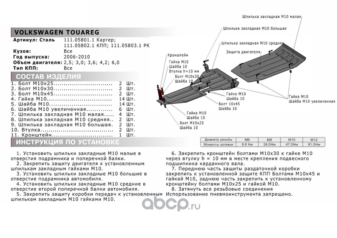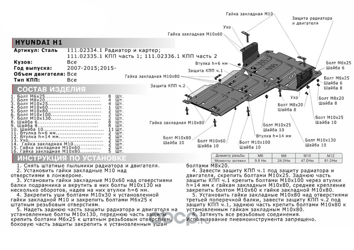 Защита картера и КПП, сталь 1.5 мм, с крепежом, штампованная